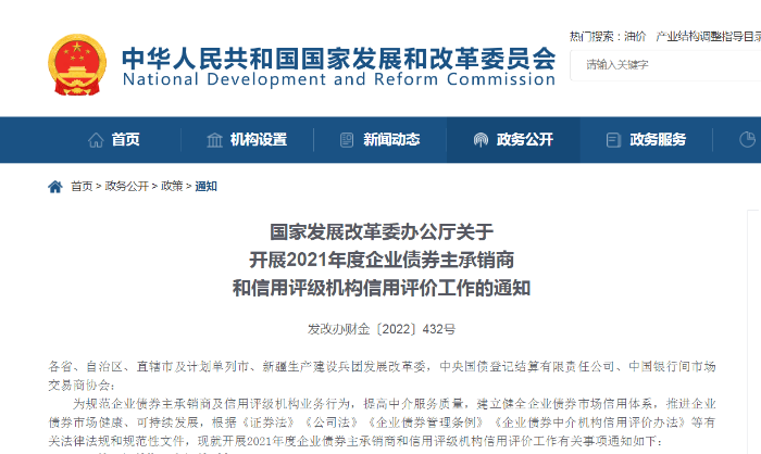 国家发改委:启动2021年度企业债券主承销商和信用评级机构信用评价工作